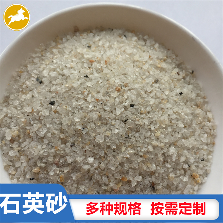 石英砂是石英石經破碎加工而成的石英顆粒。石英石是一種非金屬礦物質,是一種堅硬、耐磨、化學性能穩定的硅酸鹽礦物,其主要礦物成分是SiO2。石英砂的顏色為乳白色、或無色半透明狀,莫氏硬度7。