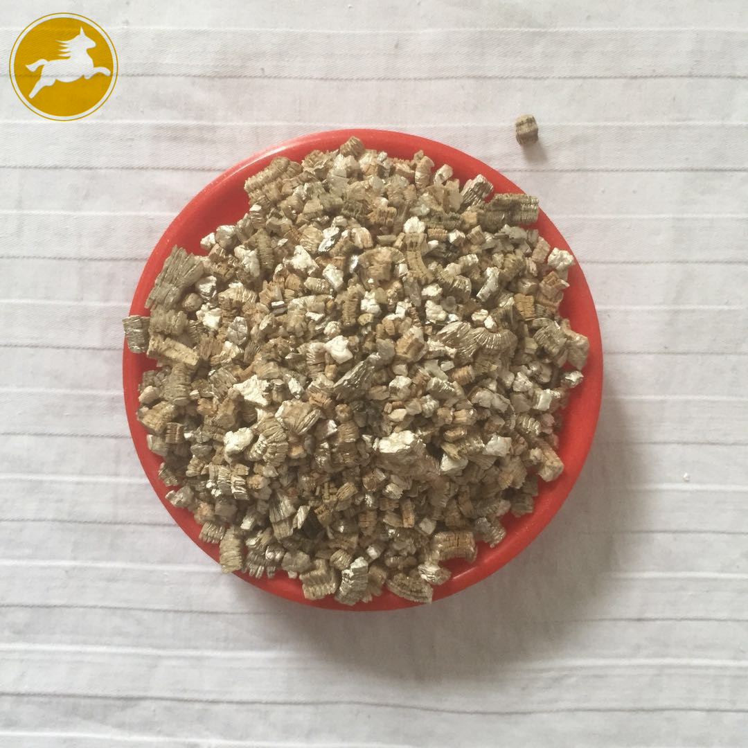 蛭石具有隔熱、耐凍、抗菌、防火、吸水、吸聲等優異性能,在800~1000℃下焙燒0.5~1.0分鐘,體積可迅速增大8~15倍,高達30倍。顏色變為金黃或銀白色,生成一種質地疏松的膨脹蛭石,但不耐酸,其介電特性也較差。